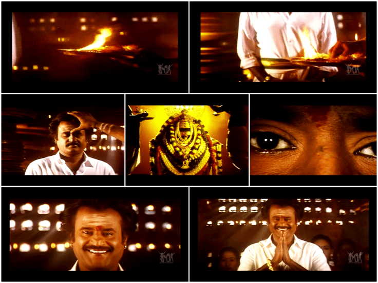 அதான்டா இதான்டா பாடல் தொடக்கத்தில் தோன்றும் காட்சியில் பின்னணியில் அருணாச்சலேஸ்வராய நமஹ என ஒளித்துக்கொண்டிருக்க தலைவர் சிவன் சன்னதியில் நின்றுகொண்டு கண்களை மூடி வேண்டி கொண்டிருப்பார். அப்போது அர்ச்சகர் அவர் நெற்றியில் குங்கும பொட்டை வைத்த உடன் தலைவர் கண்களை திறந்து நம்மை பார்த்து சிரித்த முகத்துடன் வணக்கம் வைப்பார், அதிலிருந்து பாடல் தொடங்கும். இதைப்போல நான் சிவன் சன்னதியில் நின்றுகொண்டு இருக்கும் போது அர்ச்சகர் என் நெற்றியில் விபூதி வைத்து ஆசிர்வதித்து சென்றது எனக்கு அருணாச்சலம் படத்தை நியாபகப்படுத்தியது. கோவிலில் சாமி கும்பிட்டு முடித்துவிட்டு வெளியே வந்தபோது அங்கு இருந்த கடைகளில் ருத்ராட்சம் இருப்பதை பார்த்தவுடன் அருணாச்சலம் படத்தில் தலைவர் அணிந்திருப்பது நியாபகத்துக்கு வர, அது என்னவென்றே தெரியாமல் அப்பாவிடம் வேண்டும் என அடம்பிடித்து வாங்கி அணிந்து கொண்டேன். அதன்பின்பு கோவிலுக்கு செல்வது பிடித்த ஒன்றாக மாறிப்போனது.