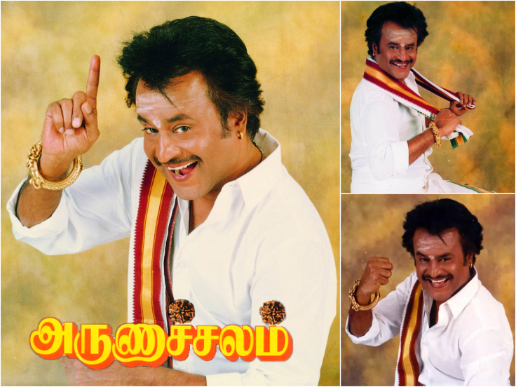 அருணாச்சலம் தான் முதன் முதலில் தியேட்டரில் பார்த்த படம் மற்றும் தலைவரின் படம். இந்த படம் பார்த்தது தொடர்பாக ஒரு சில விஷயங்கள் தான் நினைவுகளில் உள்ளது. முதலில் தியேட்டர் அனுபவம்..எங்கள் ஊரில் உள்ள திரையரங்குகளில், திரை பெரிய திரைசீலைகள் கொண்டு மூடப்பட்டிருக்கும். காட்சி துவக்கத்திற்கான மணி அடித்த பின்பு , திரையை சுற்றியுள்ள வண்ண விளக்குகள் எரிய தொடங்கும், அதை தொடர்ந்தவாறு பின்னணி இசையுடன் திரைசீலைகள் கீழிருந்து மேலாக தானாக விலகி கொண்டே வரும். ” ஹய்யா படம் ஆரம்பிக்கபோது” என படம் பார்க்க போறோம் என்கிற ஒரு குஷியான ஆர்வத்தை உண்டாக்கும். அதை தொடர்ந்து , அருணாச்சலம் படத்தில் இடம்பெற்ற “அதான்டா இதான்டா அருணாச்சலம் நான்தான்டா” பாடல். இதை தவிர்த்து படம் தொடர்பாக வேறு நினைவுகள் இல்லை. பின்னாளில் விவரம் தெரிந்து சன் டிவியில் பார்த்தபோது தான் படம் புரிந்து பிடித்த படமாகிப்போனது. படம் பற்றிய நினைவுகள் இல்லை என்றாலும் அதன் பிரதிபலிப்புகள் இருந்தது.