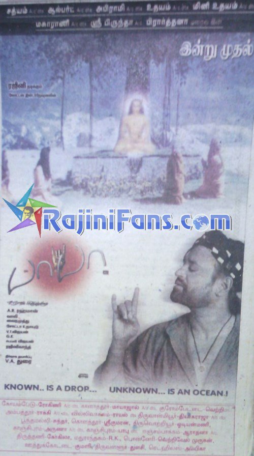 அப்படி ஒருநாள் செய்தித்தாளை புரட்டிக்கொண்டிருக்கும்போது தான் தலைவரின் பாபா பட விளம்பரத்தை பார்த்தேன். அதற்கு முன்னர் டிவியில் அருணாச்சலம், முத்து, படையப்பா போன்ற படங்களை பார்த்து கொண்டிருந்த எனக்கு தலைவரோட புதிய படம் ஒன்று வெளிவருவது தெரிந்தது. படத்தின் பெயர் பார்த்ததும் பிடித்துவிட்டது. அப்போவே அந்த விளம்பர பக்கத்தை தனியாக எடுத்து வைத்துவிட்டேன்.