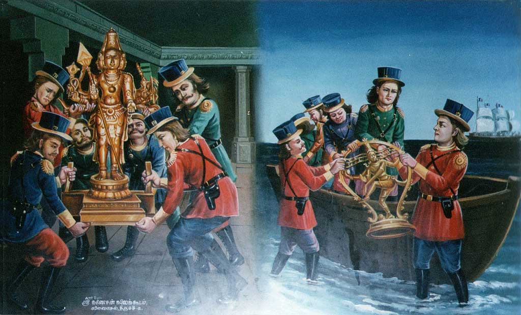 ஒவ்வொரு முறை திருச்செந்தூர் கோவில் செல்லும்போதும் பிரகாரத்தில் உள்ள ஓவியங்களை பார்த்து ரசிப்பேன். அதிலொன்று டச் படையெடுப்பின் போது திருச்செந்தூர் கோயிலில் உள்ள சண்முகர் நடராஜர் சிலைகளை டச்சுக்காரர்கள் கொள்ளை அடித்துச் சென்ற வரலாறு.