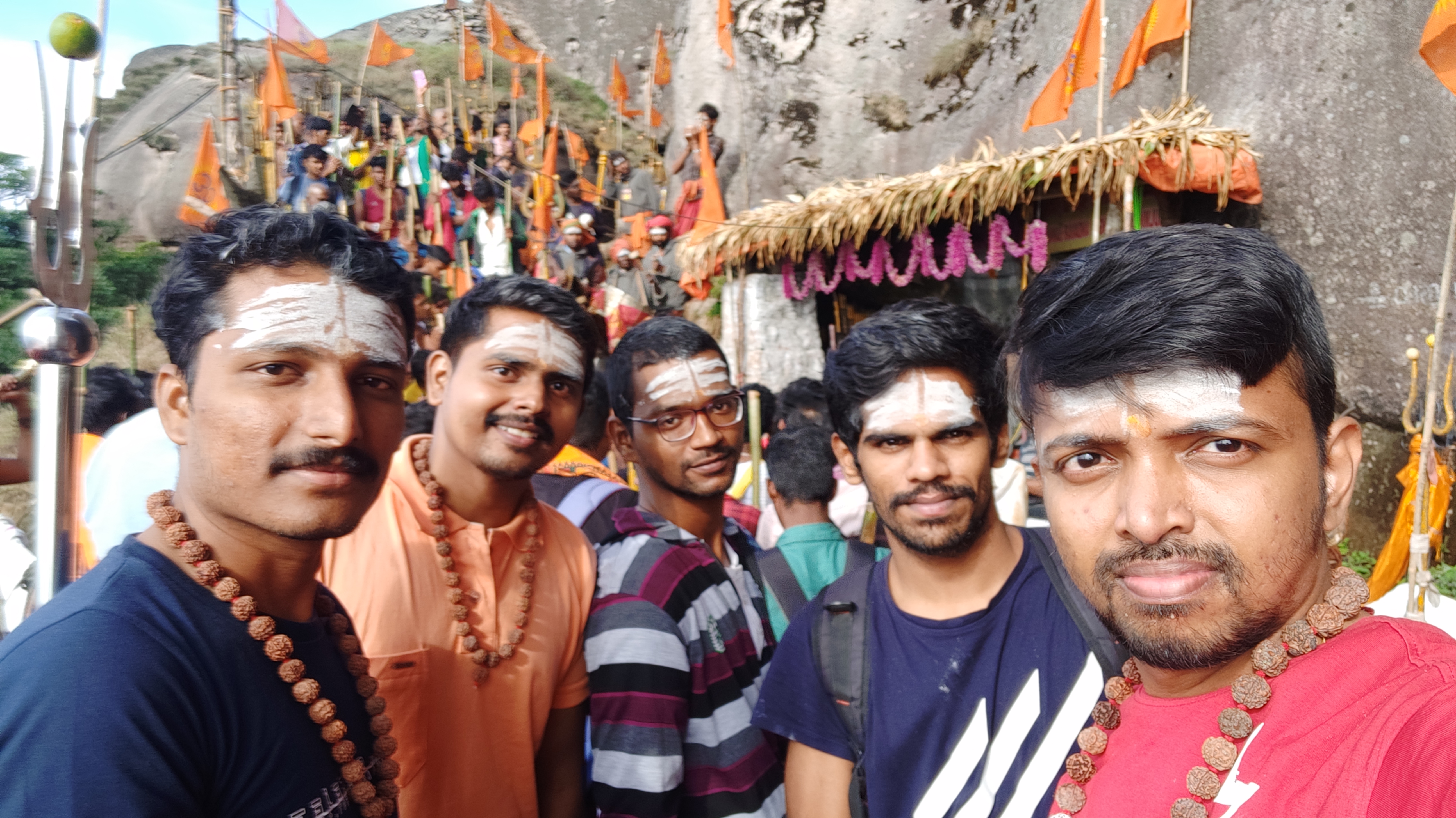 வெள்ளியங்கிரி ஆண்டவரை நன்றாக தரிசித்துவிட்டு, பிரசாதம் சாப்பிட்டுவிட்டு அமர்ந்து இருந்தோம். உடன் வந்திருந்த சிவராஜ் அண்ணன் சிவபூஜையில் ஈடுபட்டு இருந்தார். எதிர்பாராத நேரத்தில், எதிர்பாராத வண்ணம் என்னை அழைத்து ருத்திராட்ச மாலையை அணிவித்தார்..”சிவ சிவ”🙏😍🥺