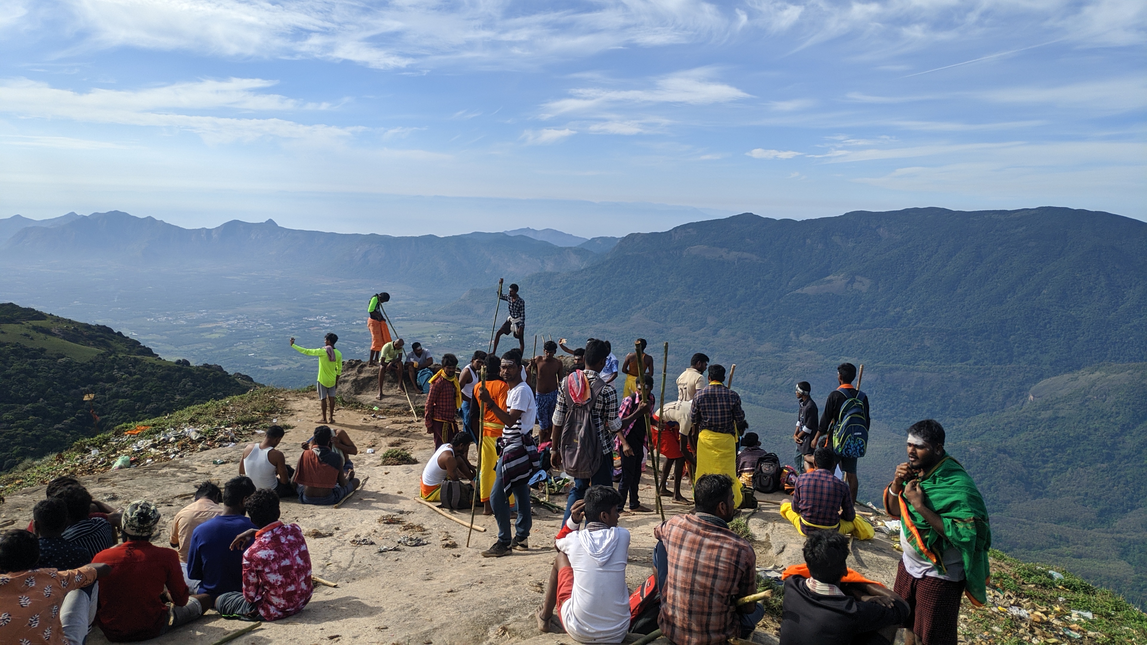 சுற்றிலும் மேற்கு தொடர்ச்சி மலை, காலை வேளையில் இதை பார்க்கும்போது கண்களுக்கு குளிர்ச்சியாக இருந்தது (ஆனால் இதுவே உச்சி வேளையில் அந்த மலையை பார்க்கும்போது பயமாக இருந்தது). சிறிது நேரம் ரசித்து விட்டு, மீண்டும் மலை ஏறினோம். தோ கிலோமீட்டர், தோ கிலோமீட்டர்னு சொல்லி ஒரு வழியா மலைக்கு மேல வந்துட்டோம்.