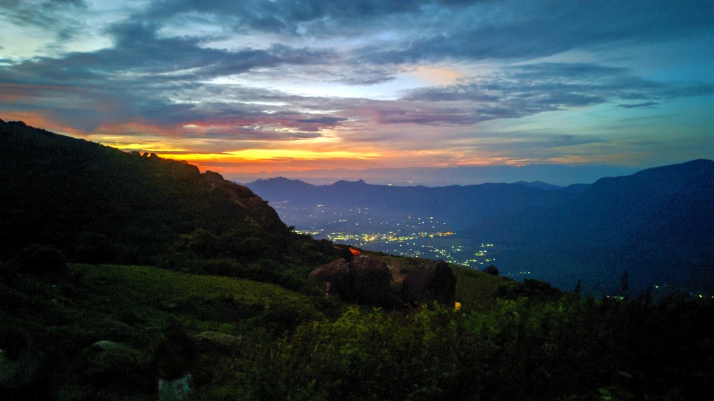 மலை மேல இருந்து கீழ அதும் இரவு நேரத்துல பார்க்கிறப்போ மின் விளக்குகளின் ஒளியில் நகர பார்வை அருமையாக இருந்தது. அதை ரசித்தவாறே மலையில் ஏறிக்கொண்டு இருந்தேன்.